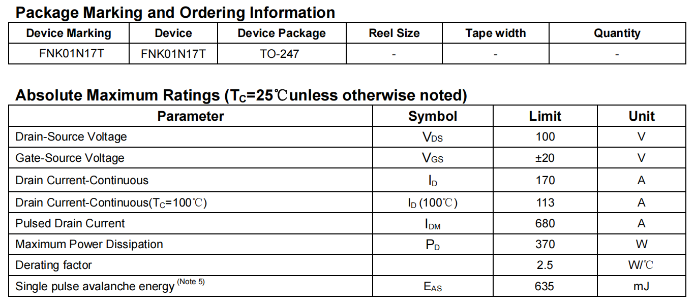 ● The FNK01N17T uses advanced trench technology and design to provide excellent RDS(ON) with low gate charge. It can be used in a wide variety of applications.