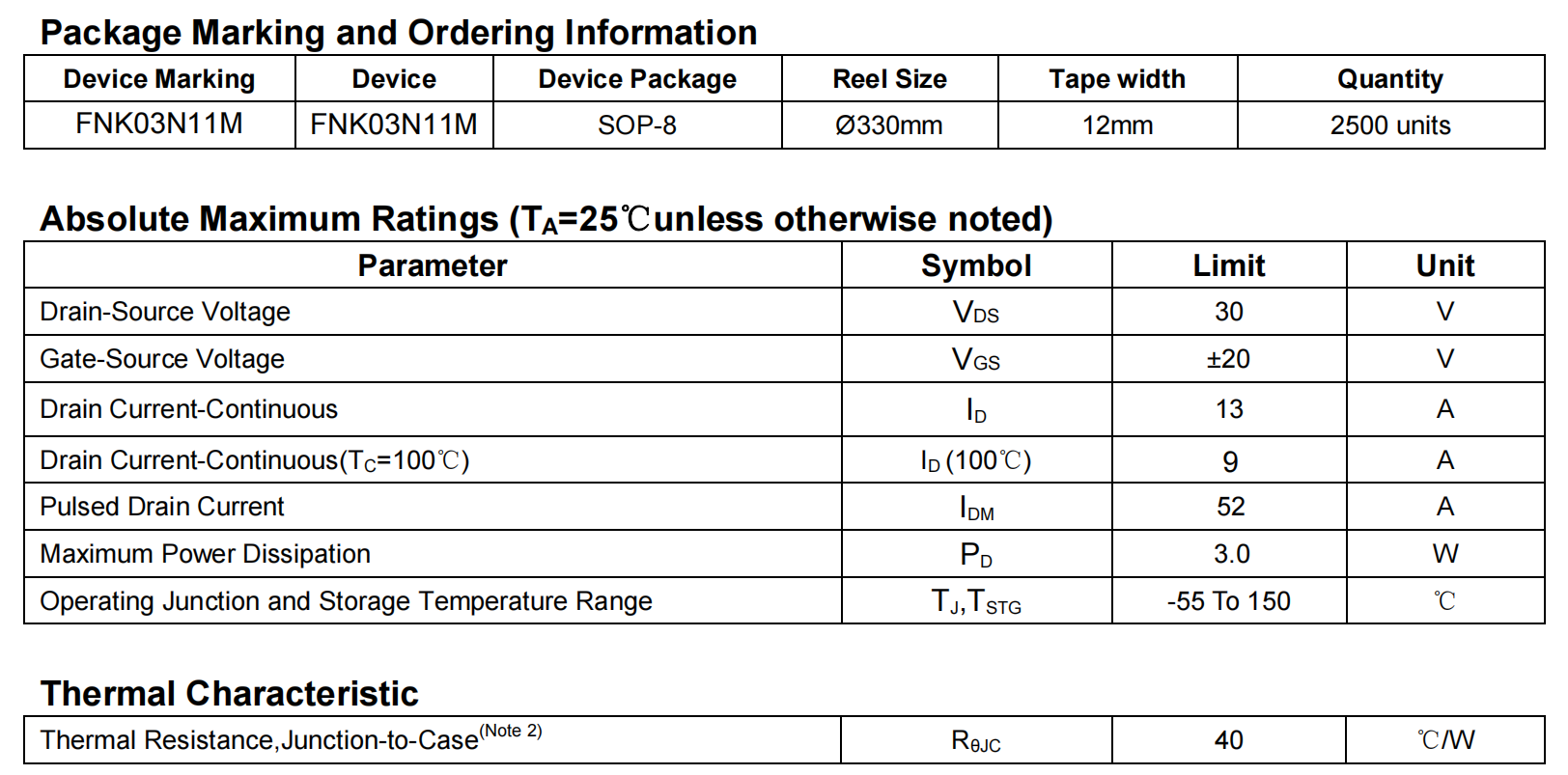 产品介绍1: ● VDS= 30V, ID =13A RDS(ON) < 11mΩ @ VGS=10V RDS(ON) <15mΩ @ VGS=4.5V ● High density cell design for ultra low Rdson ● Fully characterized avalanche voltage and current